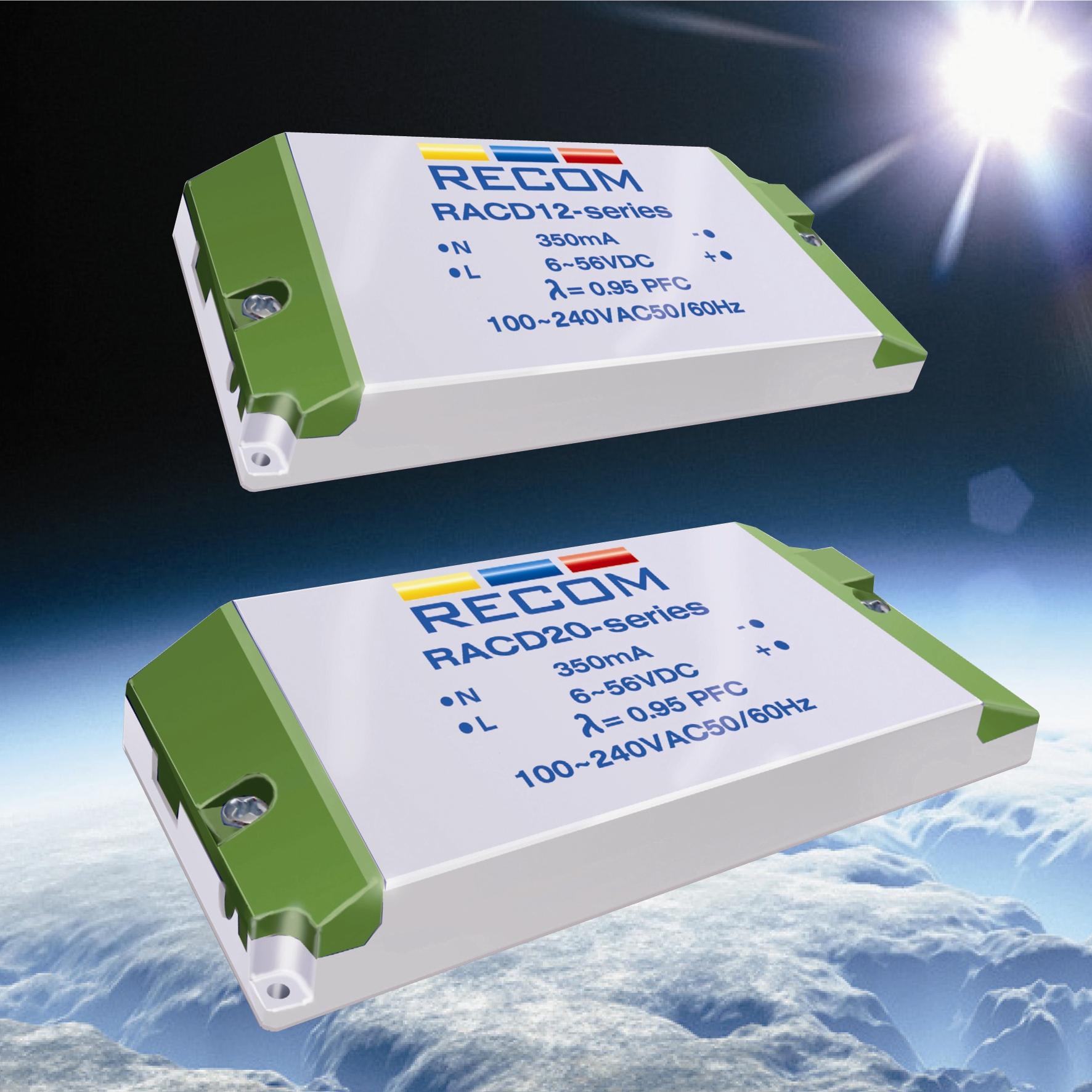 RECOM的全新系列恒流LED驅(qū)動(dòng)器功率在12瓦至20瓦之間,具有通用AC輸入、功率因數(shù)校正的特性,并通過UL-8750認(rèn)證。