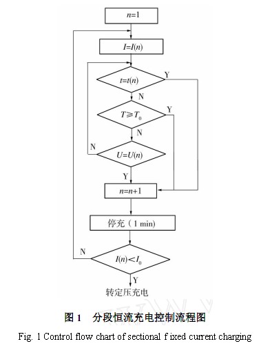 溫度參數(shù)控制 : 設(shè)定某段恒流充電至可接受電流極限時的電池溫度最高值 ,根據(jù)溫度傳感器檢測的電池溫度來控制充電裝置。當(dāng)外界環(huán)境溫度較低 、設(shè)置的電池最高溫度較高時 ,采取控制溫升法 ,當(dāng)電池的溫升達到設(shè)定值時 ,溫控器使充電裝置停止充電 ,直到溫度下降至適當(dāng)值時 ,自動進入下一階段恒流充電 。