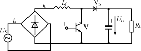 開關電源的功率因數校正器(PFC)可分為兩類,一類為有源PFC,由電感電容及電子元器件組成;另一類為無源PFC,一般采用電感補償方法使交流輸入的基波電流與電壓之間相位差減小來提高功率因數。在校正電路中有源PFC較多采用高頻升壓電路功率因數開關調節器,通常采用Boost電路,基本電路拓樸見圖1。