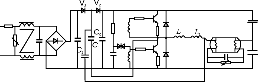 圖1采用無源濾波的電子鎮(zhèn)流器電路