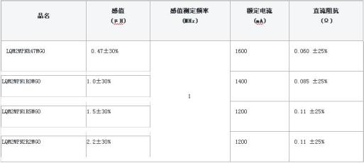 表1是各產品的主要特性,表二則是電流-感值偏執特性。