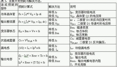 開關電源的損耗包含導通損耗、開關損耗以及外圍控制電路損耗,電路不同部分的損耗成因各不相同,因此抑制損耗的方法也有不同。需要用數學方程式量化這些損耗,進而整理出降低各部分損耗的方法,才能得出具體有效降低整體損耗的方案。為了討論方便,本文以常用的回掃轉換器為例,將各部分損耗以數學方程式表示,并列出解決方法。表2、表3及表4分別為導通損耗、切換損耗以及外圍控制電路損耗的原因分析與解決對策。