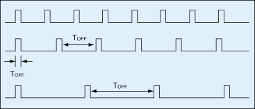 由這幾張表分析結果可以很明顯看出,導通損耗和切換損耗與轉換器開關頻率的關系非常密切,而較高的頻率可以降低轉換器對儲能元件(電感與電容)大小的要求。為了降低轉換器待機時的損耗而讓轉換器在低負載或空載時將開關頻率降低,可以兼顧到元件體積與能量損耗。目前已有多種技術基于這種概念應用到實際電源管理IC上,以下我們將就其中三種應用較為廣泛的技術分別介紹其設計概念與特性。