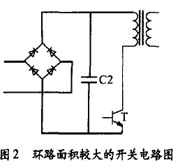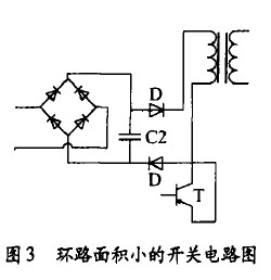 如圖2為環路面積較大的開關電路,圖3為環路面積較小的開關電路。