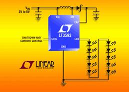 凌力爾特公司 (Linear Technology Corporation) 推出采用 2mm x 2mm DFN (或 ThinSOTTM) 封裝的高效率恒定電流白光 LED 驅動器 LT3593。