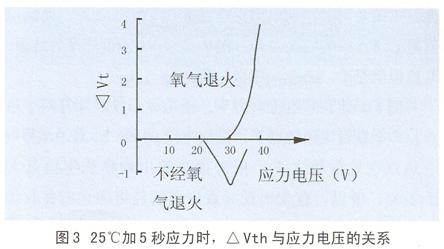 (1) 較高柵電壓下,閾值電壓漂移較大,圖3示出P溝硅柵MOS在高柵電壓下的。由圖3可見,柵電壓VG=40V時,