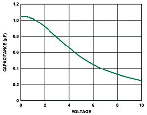 其中,CBIAS是工作電壓下的標稱電容;TVAR是溫度范圍內最差情況下的電容變化率(百分率);TOL是最差情況下的元件容差(百分率)。