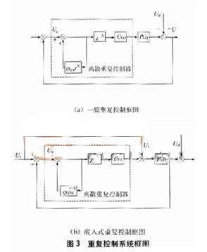 逆變器采用重復控制(repetitive control)是為了克服整流型非線性負載引起的輸出波形周期性的畸變,它通常與其他PWM控制方式相結合。重復控制的思想是假定前一周期出現(xiàn)的基波波形將在下一基波周期的同一時間重復出現(xiàn),控制器根據(jù)給定信號和反饋信號的誤差來確定所需的校正信號,然后在下一個基波周期的同一時間將此信號疊加到原控制信號上,以消除后面各周期中將出現(xiàn)的重復畸變。