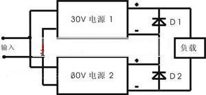 220V交流電壓經(jīng)整流和濾波后得到320V左右的直流電壓,加至電源模塊輸入端。單DC-DC模塊的最高輸出電壓一般為+48V,要得到+60V的直流輸出電壓,必須采用模塊串聯(lián)的方法得到。設(shè)計(jì)采用兩塊PH600S280-28 DC-DC模塊(調(diào)至+30V輸出),通過串聯(lián)得到+60V的輸出電壓,如圖1所示。