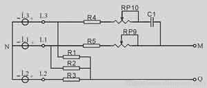 在保護器電壓處于正常工作帶時,且工作電源端所加電壓相序(L1、L2、L3)為正相序,工作保護觸點吸合。如L1電壓呈斷相狀態時,則其余兩相呈過壓狀態,保護器也隨之進入保護狀態。當L1相又重新恢復供電,且加入電壓的L1、L2、L3都在其規定的正常工作帶范圍內時,保護觸點6又重新開始吸合工作。當加入工作電源輸入端由L1、L2、L3變為L2、L1、L3或L3、L2、L1時,因相序發生變化,保護器的保護觸點都呈釋放斷開狀態,無保護功能。