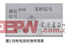 大功率DC/DC變換器控制電路主要由電源模塊、采樣信號、通訊信號以及驅(qū)動模塊組成,為防止相互間信號干擾,在設(shè)計電路的時候?qū)⑵涓綦x,如圖5所示。