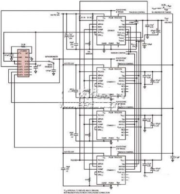 有些應用集中于用4個并聯的μModule穩壓器取代單個開關,這將通過多相同步降低峰值開關電流。這些開關是由一個相位變化的時鐘從外部驅動的。每個開關的接通時刻之間都是有間隔的,從而在輸入中產生均勻的電流分布。在這種大功率系統中,電壓紋波降低了。同步并聯穩壓器的關鍵優勢是,由于消除了輸入和輸出中的紋波電流,減小了輸入和輸出電容器的尺寸,從而消除了對大容量電容器的需求。