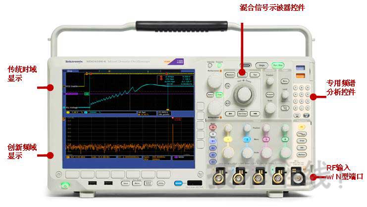 泰克8月31日宣布,推出全球首款集示波器、頻譜分析儀、邏輯分析儀和協議分析儀于一體的混合域示波器MDO4000系列。其主要特點是:可提供捕獲時間相關的模擬、數字和RF信號的系統級觀測。這種時域和頻域間的關聯,目前其他廠商還無法實現。泰克為此正在申請包括Spectrum Time在內的26項專利技術。