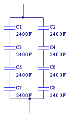 超級(jí)電容器組的等效電容為: