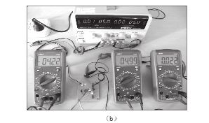 我們制作了晶體管的測試電路板,分別對NPN 型晶體管2N5551、PNP 型晶體管2N5401 驅動電路中相同負載的不同接法做了實物測試。圖4(a)是晶體管測試電路板的原理圖,將圖4(a)左邊J1 的1、2 引腳短接,可以測試NPN 型晶體管負載驅動電路;將J1的2、3引腳短接,可以測試PNP型晶體管負載驅動電路。