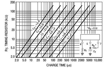 直流電源s V 從腳15 接入后分兩路,一路加到或非門(mén);另一路送到基準(zhǔn)電壓穩(wěn)壓器的輸入端,產(chǎn)生穩(wěn)定的+5V 基準(zhǔn)電壓。+5V 再送到內(nèi)部(或外部)電路的其它元器件作為電源。振蕩器腳5 須外接電容T G 腳6 須外接電阻RT。振蕩器頻率f 由外接電阻 RT 和電容 CT 決定, f = 1.18/RT CT 。可以根據(jù)廠家的一個(gè)圖查出。如圖5: