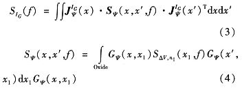 氧化層內部的缺陷對柵漏電流漲落的貢獻,已在格林表達式中考慮和體現。這種近似允許擯棄等效平帶電壓漲落的假設,由此得到的柵電流漲落譜密度為
