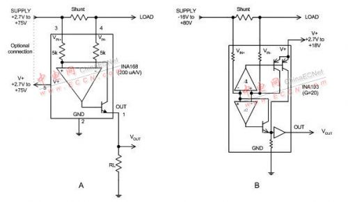 電流分路.是專(zhuān)門(mén)用于分路電流檢測(cè)的高共模電壓差動(dòng)放大器,能夠解決電阻型差動(dòng)放大器的局限性。電流分路.與差動(dòng)放大器相比的主要區(qū)別在于:其共模電壓功能通常只擴(kuò)展到正電壓,而一些電流分路.允許共模接地。這會(huì)造成更多的衍生情況,我們隨后還要談到。共模電壓功能也允許擴(kuò)展到負(fù)電壓。電流分路.從一開(kāi)始設(shè)計(jì)時(shí)就是以單電源電壓工作的,通常最低電壓可達(dá) 2.7V。圖 3 顯示了兩類(lèi)電流分路.,分為電流輸出型分路.和電壓輸出型分路.。電流輸出型分路.通常靜態(tài)電流較低,需要外部輸出電阻,從而使終端用戶能夠設(shè)定增益。電壓輸出器件采用固定增益且不需要其他組件。