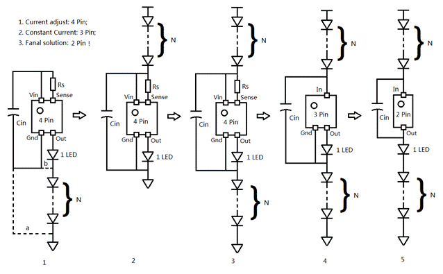 其中4條管腳的恒流二極管主要用于可調(diào)恒流電流。
