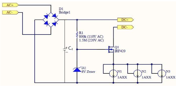 圖10. 采用恒流二極管作為LED驅(qū)動(dòng)電源