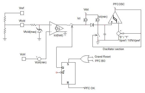 VCTRL與功率及頻率的關系:當輸出功率下降時,VCTRL隨之下降;當到達反走設定點時,頻率線性下降;65 kHz版本將最小頻率內部設定為40 kHz。