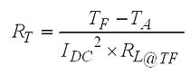 這里要注意的一件事情是電感器的功耗是其線圈電阻的函數,后者會隨著溫度發生變化。因此,需要考慮計算電感器在給定RT的TF。將RT的等式插入電感電阻與溫度等式并求解TF可以得出: