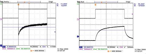 因為電流有些輕微依賴MOSFET的導通電阻,所以有必要在電流接近目標閃光電流時測量 PFET電阻。使用大測試電流的問題是它們可能導致器件發熱。克服此問題的方法是將閃光超時時間設置為最低 32ms,并在示波器上測量PFET的電壓降。在+25℃到+125℃的情況下,使用1.2A閃光電流,結果顯示的斜率大約為 0.42mΩ/℃ 。要注意的一個事情是PFET通過VOUT引腳供電,因此VOUT=5V時,其導通電阻會低于VOUT=3.9V時的電阻值。