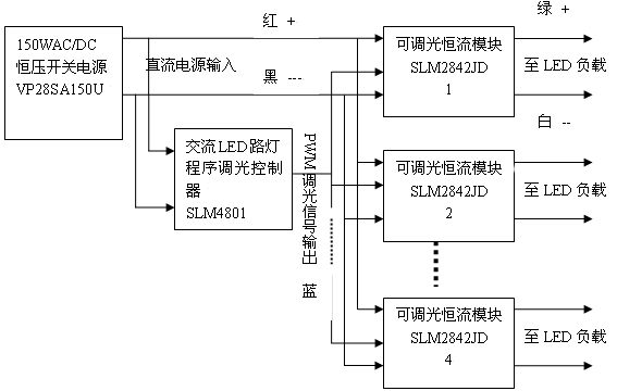 而且這種恒壓和恒流分開的方案的最大優(yōu)點是可以插入程序調光系統(tǒng)。這樣可以進一步節(jié)約電能40%以上,這是任何直接恒流輸出方案所無法實現(xiàn)的。