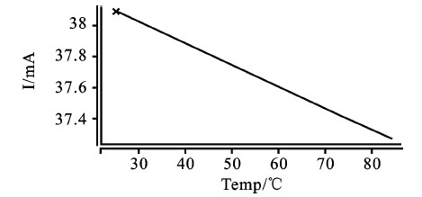 設置Rset為500Ω、Vcc為3V,令電路工作的環(huán)境溫度為25℃~85℃時,恒流輸出情況如圖6.驅動電流由37.3mA變化到38.1mA,波動百分比2.14%.