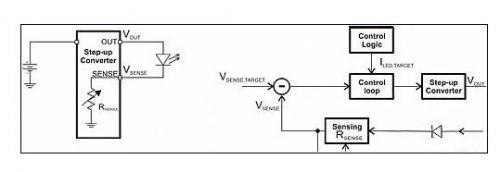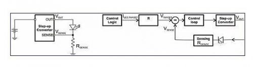 將閃光燈 LED 與一個電流檢測電阻串聯,然后通過一個升壓轉換器來驅動,這是一種簡單的方法。圖 1 描述了這種方法。