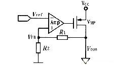 間接閉環控制環路如圖1所示,該控制環路包括一個誤差放大器,反饋環路和調整管(VMP管)。工作原理是由誤差放大器將輸出反饋電壓VFB與參考電壓Vref進行比較,并放大其差值(Vref-VFB)以此來控制調整管(VMP)的導通狀態,實現負反饋,從而得到穩定的輸出Vcon。電路剛啟動時,反饋電壓VFB很低,如果穩壓器啟動時產生較大的電容(或者負載電容很大)或VMP管導通時有較小的電阻,浪涌電流(即流過VMP管的瞬間電流)就會很大,有時會接近穩壓器的電流限值。因此,必須在誤差放大器中設計軟啟動電路,以保證整個電路在上電后進入正常的直流偏置狀態,不會產生浪涌電流。