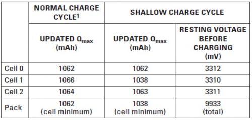 阻抗跟蹤算法將 Qmax 定義為電池的總化學容量,其以毫安小時 (mAh) 計算。一次正確的 Qmax 更新,必須滿足下列兩個條件: