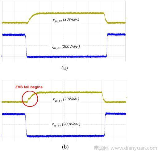 圖6 ZVS 運(yùn)作驗證;(a) 30% 負(fù)載;(b) 20% 負(fù)載狀況