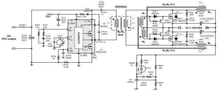 圖3 360 W PC電源的設(shè)計示例 (12 V, 30 A)