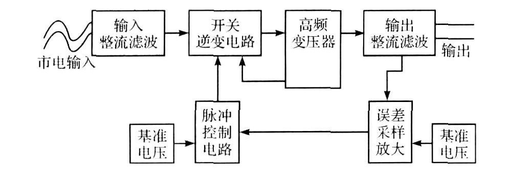 市電經過一次整流濾波后變成直流電壓, 送到開關逆變電路。逆變電路將直流變成幾百赫茲到幾千赫茲的高頻矩形波, 高頻矩形波通過高頻變壓器耦合到二次線圈以得到小電壓交流電, 此交流電經過二次整流濾波后輸出以驅動負載。同時, 該輸出經過誤差放大電路采樣取得的輸出電壓值又回饋給脈沖控制電路。脈沖控制電路將回饋的電壓值與基準電壓值比對后得出一個脈沖占空比的相應改變動作。在開關動作過程中會產生很強的噪聲, 它們通過電源線以共模或者差模方式向外傳導。此外, 開關電源也是一個敏感的器件, 因此由電網侵入的外部噪聲傳遞到內部電子電路過程中也會產生干擾。所以在設計一款開關電源之初就應該考慮到電磁干擾。
