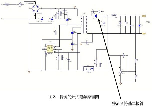 首先,從供電電源來看,如圖3是一個傳統的開關電源原理圖,如果要將5V降為4V,整流肖特基正向壓降所占輸出電壓比重必然增加,開關電源輸出電壓越低,因整流肖特基正向電壓比重越高(其比重X=V壓降/V輸出,輸出從5V降為4V,加入其壓降為0.5V,則其比重將從0.1上升為0.125,提高25%),電源輸出效率就越低,這對于LED屏幕整體節能效果并不明顯,所以采用這一電源設計原理顯然是是無法實現電源工作效率的提升。同時,5V是標稱值電壓,在市場運用上已經相當成熟,啟用新的開關電源電源電壓,降低效率的同時只會增加成本,品質也難保障,實現有困難。