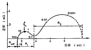 2) 高頻電阻RHF,即超過100Hz后的實部;