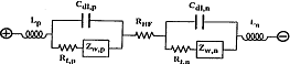 圖2-2中Lp、Ln為正負極電感;Rt.p和Rt.n 是電極離子遷移電阻;Cdl.p、Cdl.n是極板雙電層電容;Zw.p、Zw.n為Warburg阻抗,是由離子在電解液和多孔電極中擴散速度決定的;RHF是前面提到的歐姆電阻。