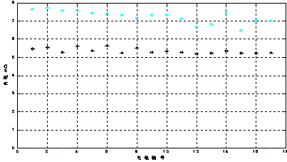 對12V100Ah開口蓄電池,分別采用HIOKI3550內阻測試儀(工作頻率1000Hz,測量電流為幾十mA)和BM6500(工作頻率10Hz,測量電流1A)測量17只電池的內阻,其結果如圖2-8所示,圖中“☆”為BM6500測得的數值,“+”是HIOKI3550所測得數值。可見BM6500所測數據均比HIOKI3550的數值高。但從圖2-8還發現,兩種方法測量的數據差值并不是一個恒值或者固定比例。