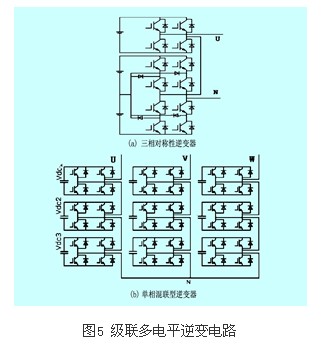 多電平逆變器實(shí)現(xiàn)的結(jié)構(gòu)一般主要有:二極管箝位型(diode-clampedinverter)、飛跨電容箝位型(flying-capacitorinverter)、具有獨(dú)立直流電源的級(jí)聯(lián)型(cascaded-inverters with separate dcsources)、具有多繞組變壓器輸出的多重化型等等。