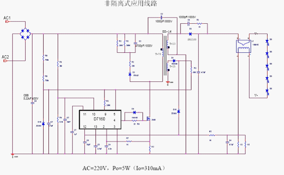針對于無電解電容方案的LED驅(qū)動器的開發(fā),上海得倍電子也推出了一款D7160 是無電解電容的LED驅(qū)動IC。它無需電解電容,節(jié)省體積,可使印刷電路板面積縮小至原來的40%,提高整個LED燈具壽命,壽命可達10萬小時以上,綠色環(huán)保,白光LED能耗是普通節(jié)能燈的1/4,內(nèi)置抖頻減小EMI,內(nèi)置各種保護(過溫、欠壓閉鎖、過壓、過流),兼顧功率因數(shù)和輸出紋波,內(nèi)部具有一個30K--130K的壓控振蕩器,使得線路更加穩(wěn)定,效率更高并可以廣泛應(yīng)用于照明LED、射燈和日光燈之中。