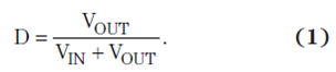 假設 100% 效率占空比 D,用于 CCM 運行的 ZETA 轉換器,其為: