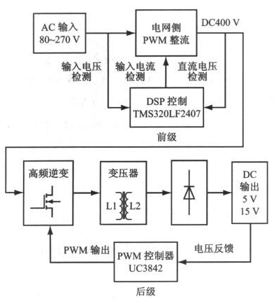 圖2 采用兩級型APFC的高功率因素開關電源結構
