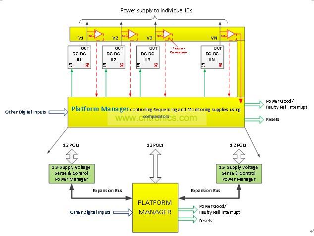 本文闡述了一個(gè)可擴(kuò)展、在系統(tǒng)可升級(jí),星型拓?fù)浣Y(jié)構(gòu)的電源管理架構(gòu),能夠滿足在一塊復(fù)雜的電路板上超過12個(gè)電壓的電源管理要求。通過使用萊迪思的Platform Manager 和Power Manager器件,提高了電路板功能的可靠性,能夠準(zhǔn)確的監(jiān)控DC-DC轉(zhuǎn)換器的輸出電壓(使用片上精密比較器),而無需折衷FPGA內(nèi)的電源管理算法。