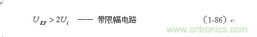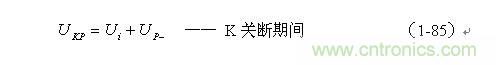 根據圖1-17,加到開關器件(控制開關)兩端的峰值電壓UKP正好等于輸入電壓Ui與反電動勢峰值Up-之和,即: