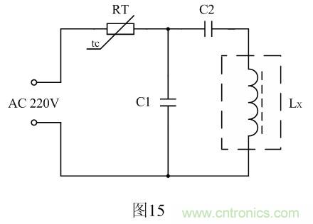 圖15中RT為熱敏電阻,Lx為小功率開(kāi)關(guān)變壓器初級(jí)線圈,C1為分流電容,C2為限流電容。電容C1和C2的大小,需根據(jù)小功率開(kāi)關(guān)變壓器初級(jí)線圈勵(lì)磁電流的大小來(lái)決定。一般消磁電流需要達(dá)到極限電流Imax的3~5倍。