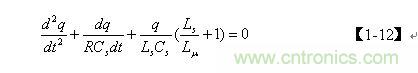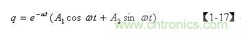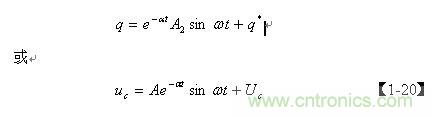 前面已經(jīng)指出,齊次微分方程【1-12】式僅表示電容Cs充滿(mǎn)電后,輸入電壓等于0時(shí),電容兩端電壓或存儲(chǔ)電荷隨時(shí)間變化的過(guò)程,即,當(dāng)t = 0時(shí),q從最大值開(kāi)始隨時(shí)間變化的過(guò)程。但齊次微分方程【1-12】式并不完全表示電容Cs充、放電的全過(guò)程,我們仔細(xì)觀察【1-17】式便知:在LC電路中,當(dāng)t = 0時(shí),如果q 為最大值,電容一定是按余弦規(guī)律放電;如果 q為最小值,則電容一定是按正弦規(guī)律充電。因此,我們還需要根據(jù)初始條件來(lái)對(duì)【1-10】非齊次微分方程式進(jìn)一步求解。