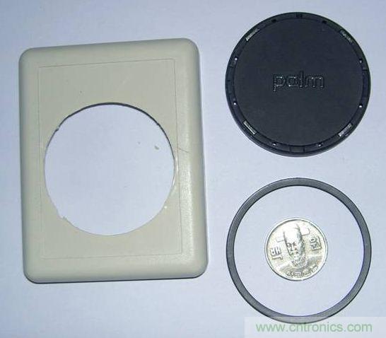 這時候點金石側(cè)視圖就像一個“凸”字形。俯視點金石,按照內(nèi)圈的直徑,在移動電源的上蓋上挖一個洞,使點金石凸出的內(nèi)圈剛好能穿過這個洞。要注意將移動電源后蓋上被點金石四塊磁鋼頂住的地方打薄,以便點金石能完美的嵌入移動電源的上蓋。