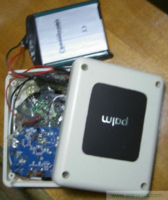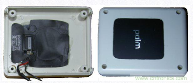 由于點金石表面是有一定凹陷下去的,非常契合palm的后蓋,而這個凹陷實在難以加工。另外,點金石里那圈非常細的線圈也是用膠水粘在外殼上的,比較難取下來。而且點金石上那個“plam”的金屬字也比較酷,因此于是我決定將點金石嵌入到移動電源中。