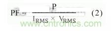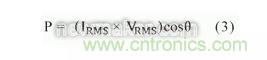 PF還等于線路電流與電壓之間的相角(θ)的余弦值;從這個(gè)角度來(lái)講,式2可以重新寫成以下形式: